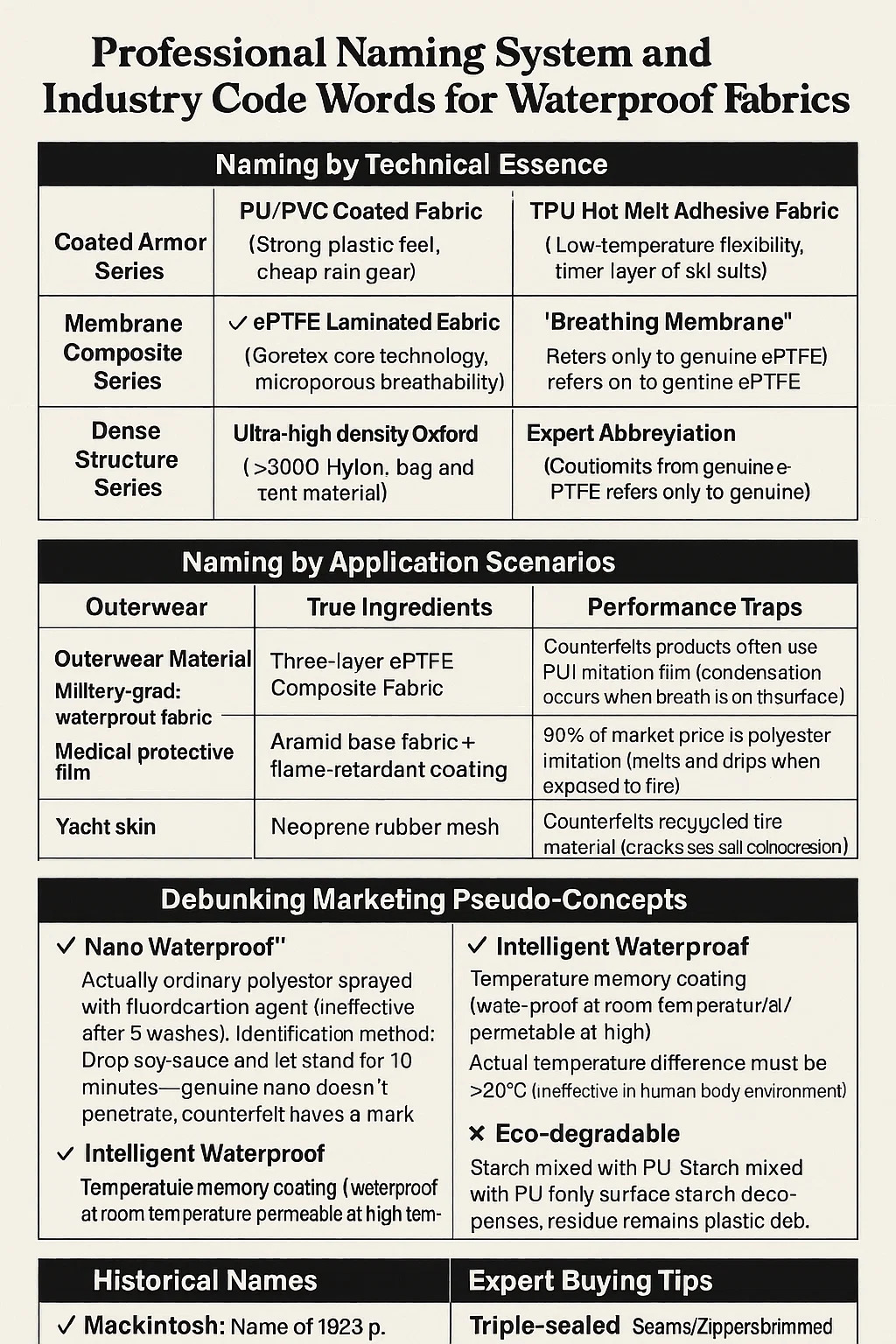 Sistema de nombres profesional y palabras clave de la industria para Telas impermeables